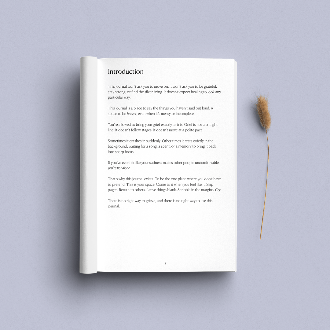 Honest Grief is a guided journal for the parts of loss no one talks about. The guilt. The heaviness. The words you never got to say. It gives you space to write honestly about what hurts, without filtering or explaining yourself. No pressure to heal on anyone else's timeline. No right way to use it. Just honesty, at your own pace.